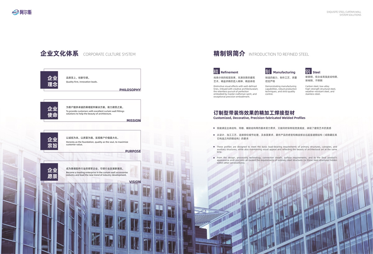 在幕墙配件的浩瀚星海中,阿尔斯犹如一颗璀璨的星辰,自2014年起,在上海这片充满机遇与挑战的土地上熠熠生辉。坚守稳健、创新、专注的发展理念,我们不断追求卓越,致力于成为幕墙配件行业的领航者。